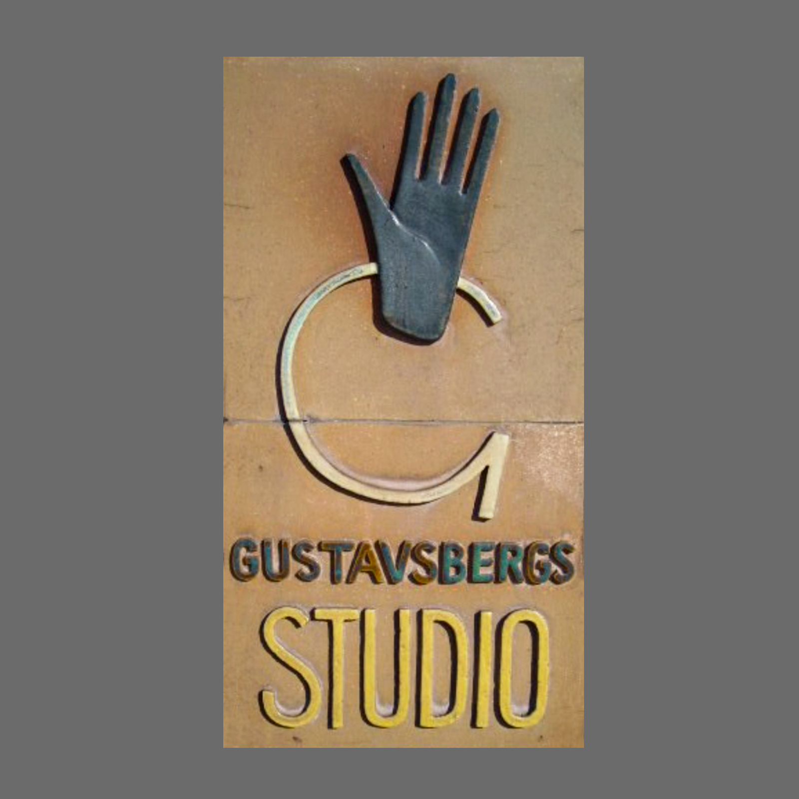 Signpost of the the Gustavsberg studio with the legendary hand